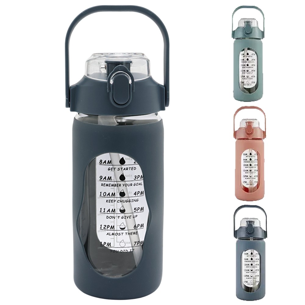 This water bottle, made from high-quality glass and safe silicone, is the ideal choice to keep yourself hydrated in a healthy and stylish way. Its elegant design and durable materials make it a perfect companion for everyday use, whether you're at home, the office, the gym, or traveling. This glass/silicone water bottle is an excellent investment for your health and lifestyle.
