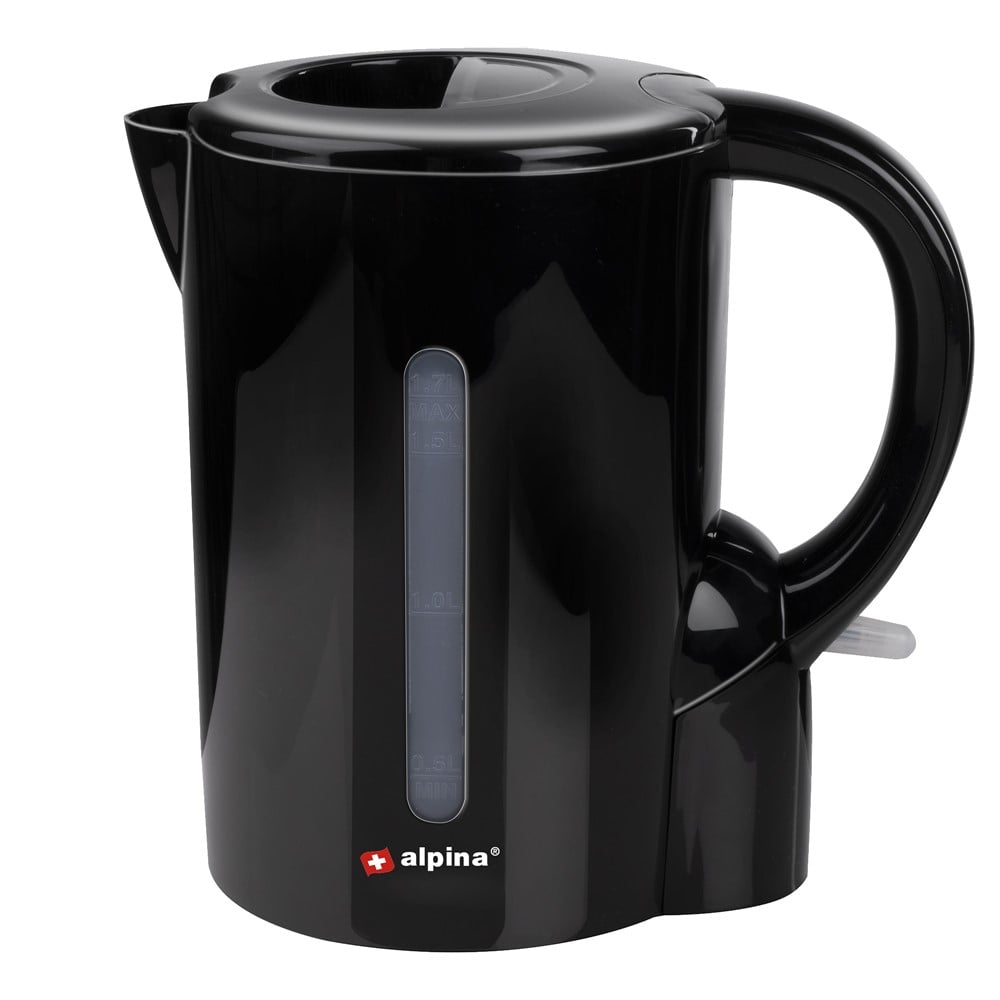 Boil water quickly for tea, instant coffee, soup or instant noodles? You do that with this alpina kettle. With its minimalist design, the beautiful black kettle always looks great on your countertop. It has a capacity of 1.7 liters, which is enough for a lot of nice hot drinks. The transparent water level indicator on the side of the jug shows you exactly how much water there is in the reservoir. You can also see how the water starts to bubble and fizz when it reaches boiling point. When the water boils, the device switches off automatically. If you accidentally turned on the kettle without water, don't worry, it has a boil-dry and overheating protection.