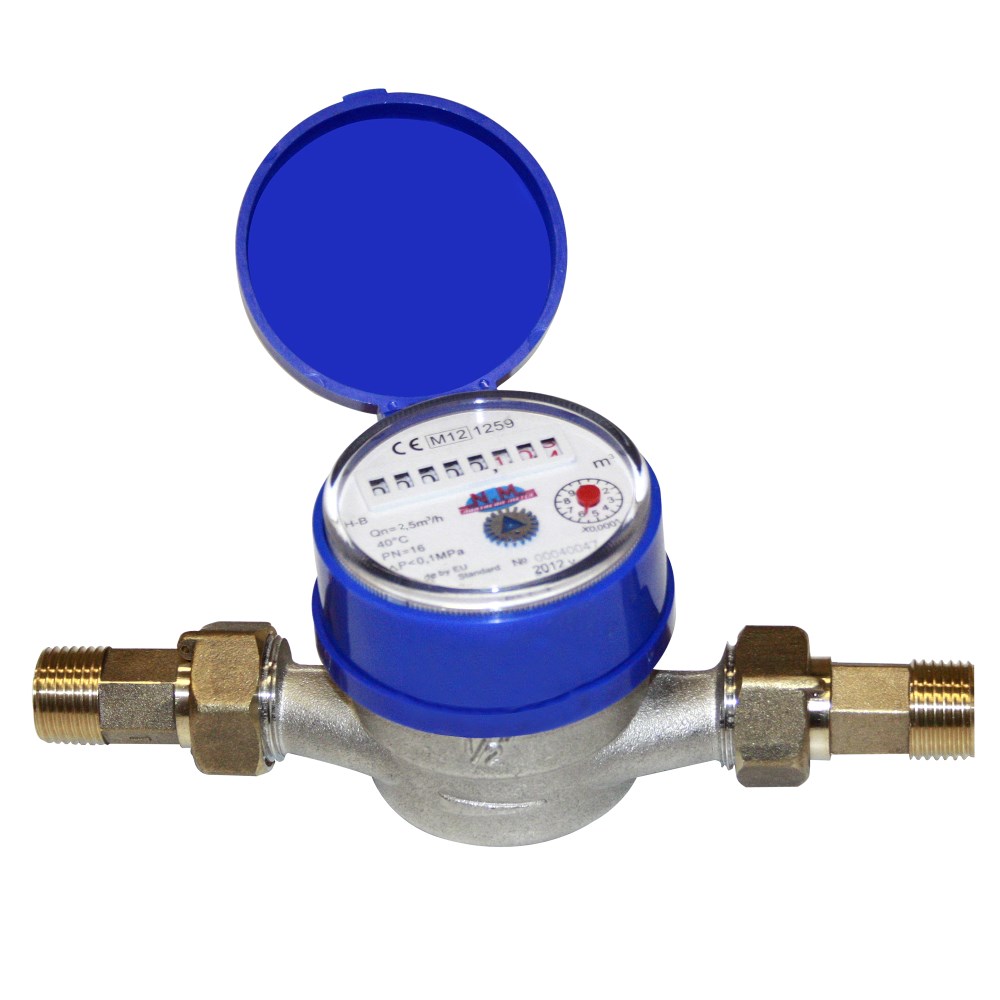 Water meter 3/4" is used to measure the volume of water used by residential and commercial building that are supplied with water by a public water supply system. The water meter has a 3/4" male outlet, which is connected with the system in the inlet. Made from brass body to resist against rust, corrosion and other chemical agent. Designed for coping with pressure up to 16 bar.