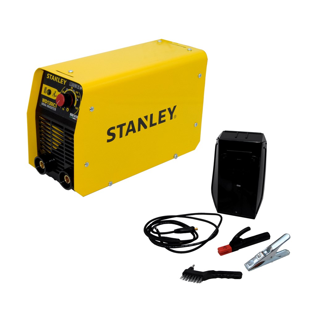 Stanley Inverter Electrode Welding Machine operate from 10 to 130Amp and can be welded from 1.6mm to 3.2mm thanks to variable current. Rutile, stainless steel, cast iron, and basic electrodes can be used. The device is operated with 230V and has a versatility at mains voltages between 170-250V. Thanks to the high service factor, electrodes up to 2.5 mm in diameter can be welded continuously. This product is made in Italy and contains the accessories you need to work safely: welding mask, hammer brush, electrode holder and ground terminal, packaged in a handy and re-sealable cardboard box. he product impresses with its ease of use and low energy consumption and helps you to do DIY work and various repairs.