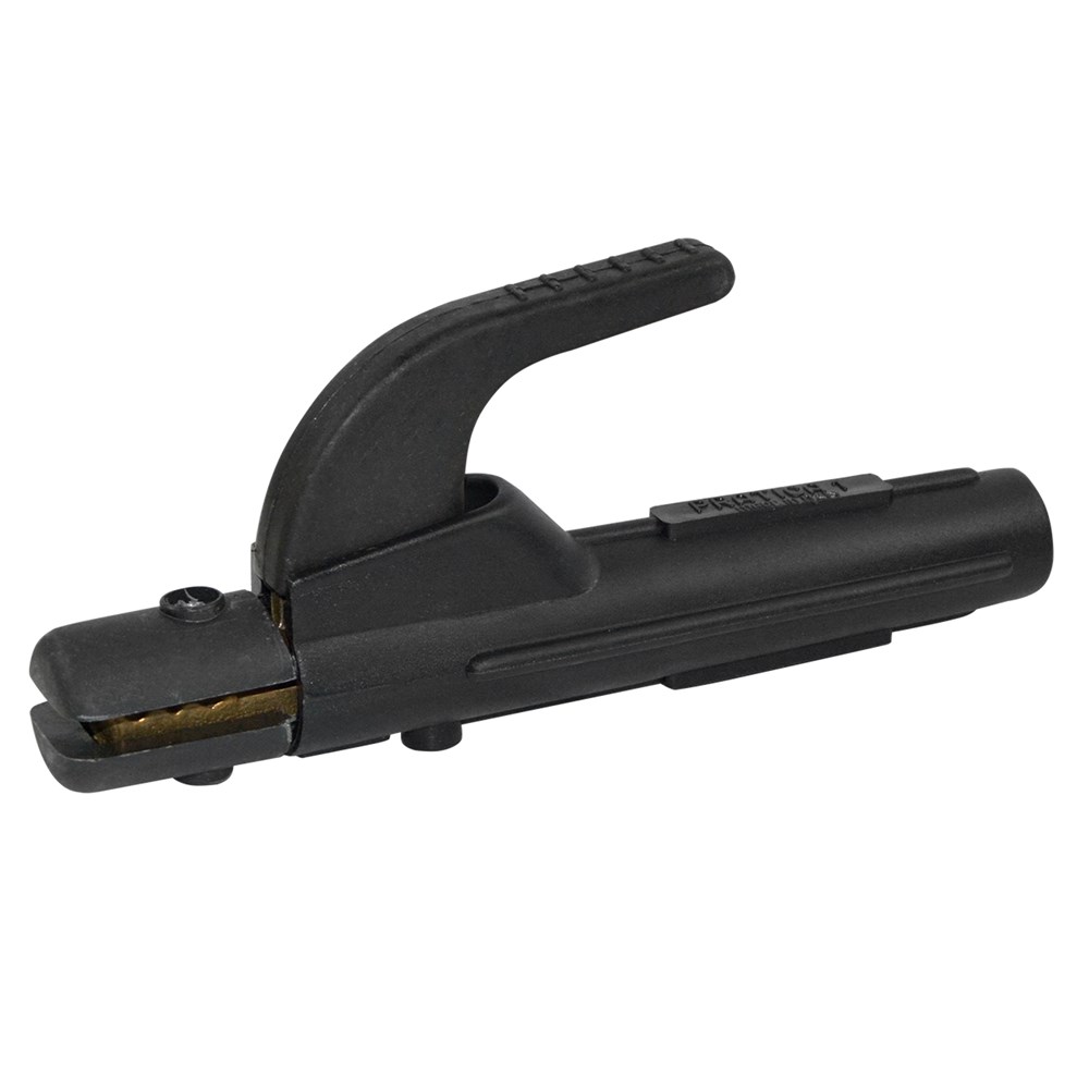 This clamping device holds the stick electrode and transfers the welding current to the stick electrode. This electrode holder is heat resistance. Holders have a fiberglass handle and jaw and are insulated for safe operation. These electrode holders also have highly conductive copper tongs.