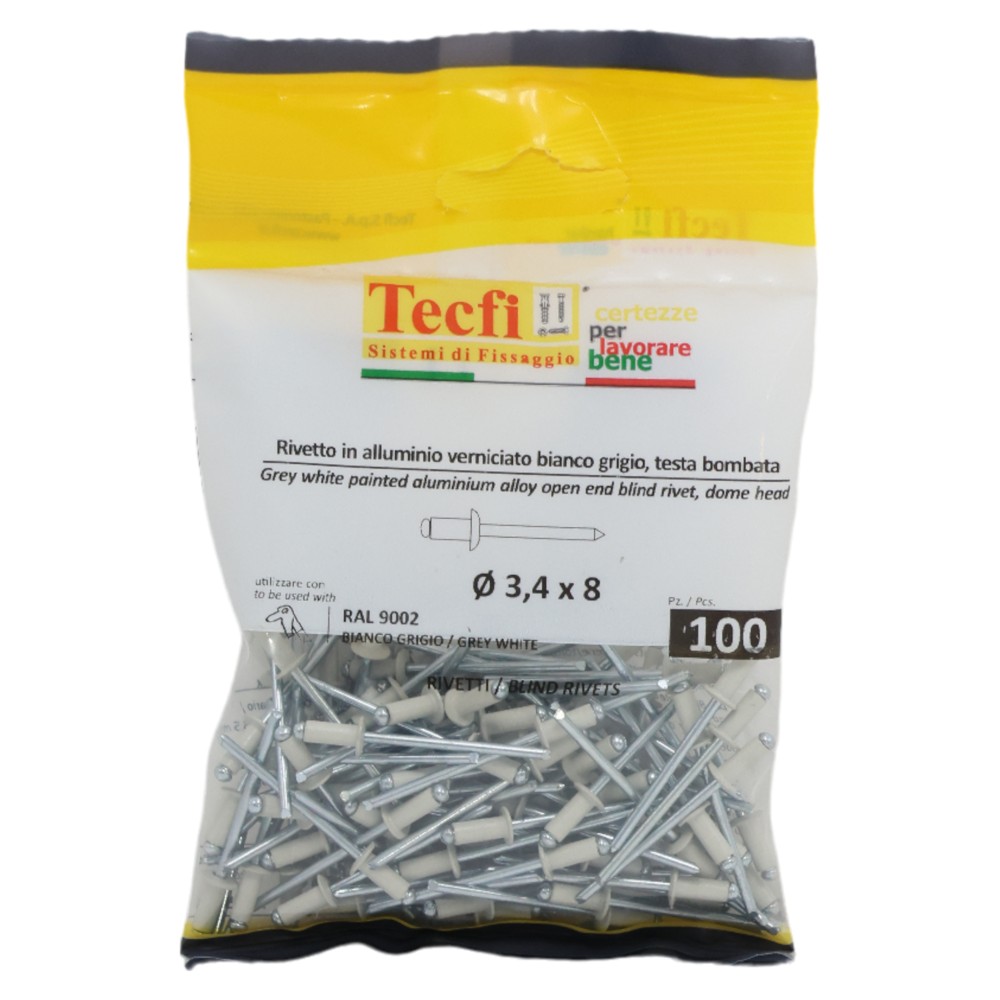 white dome blind rivets, al/zp steel ISO 15977-RAL 9002 grey, Ø 3,4x8mm, Bag 100