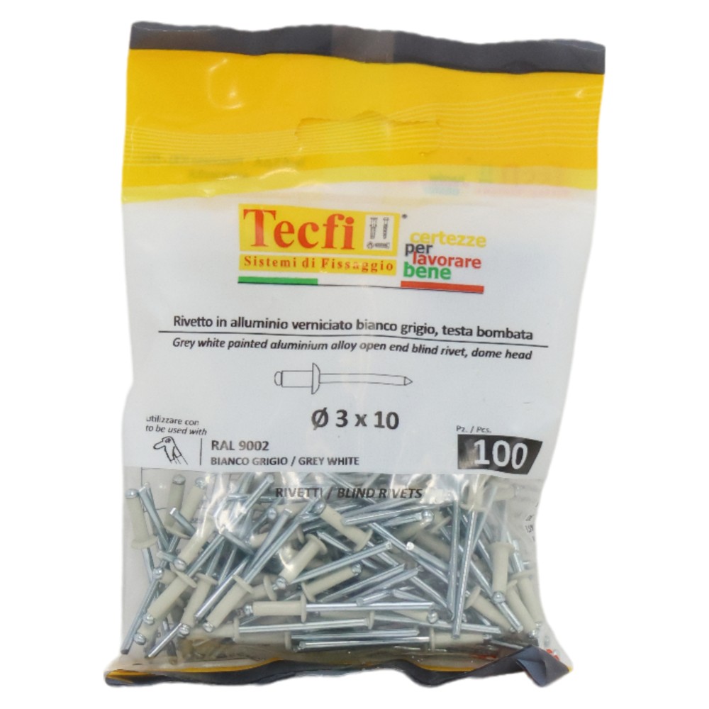 white dome blind rivets, al/zp steel ISO 15977-RAL 9002 grey, Ø 3x10mm, Bag 100