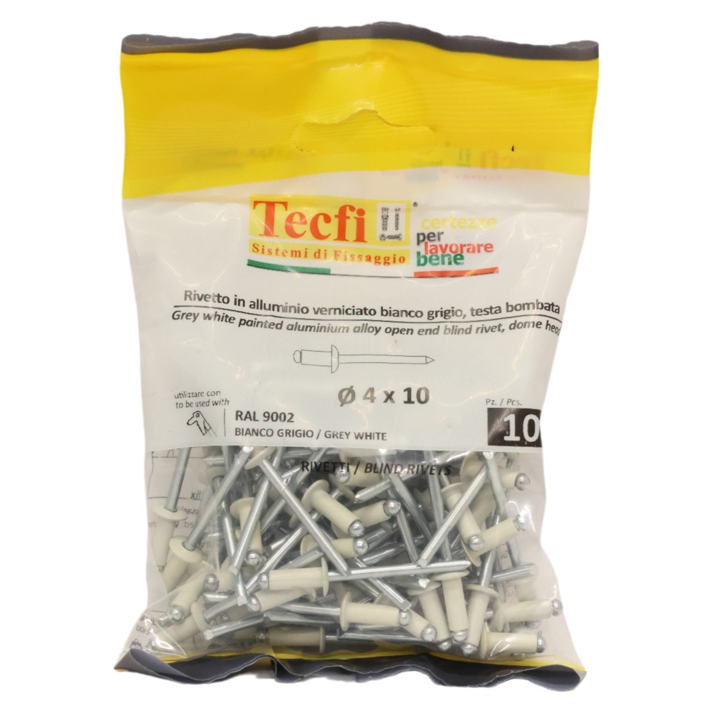 white dome blind rivets, al/zp steel ISO 15977-RAL 9002 grey, Ø 4x10mm, Bag 100