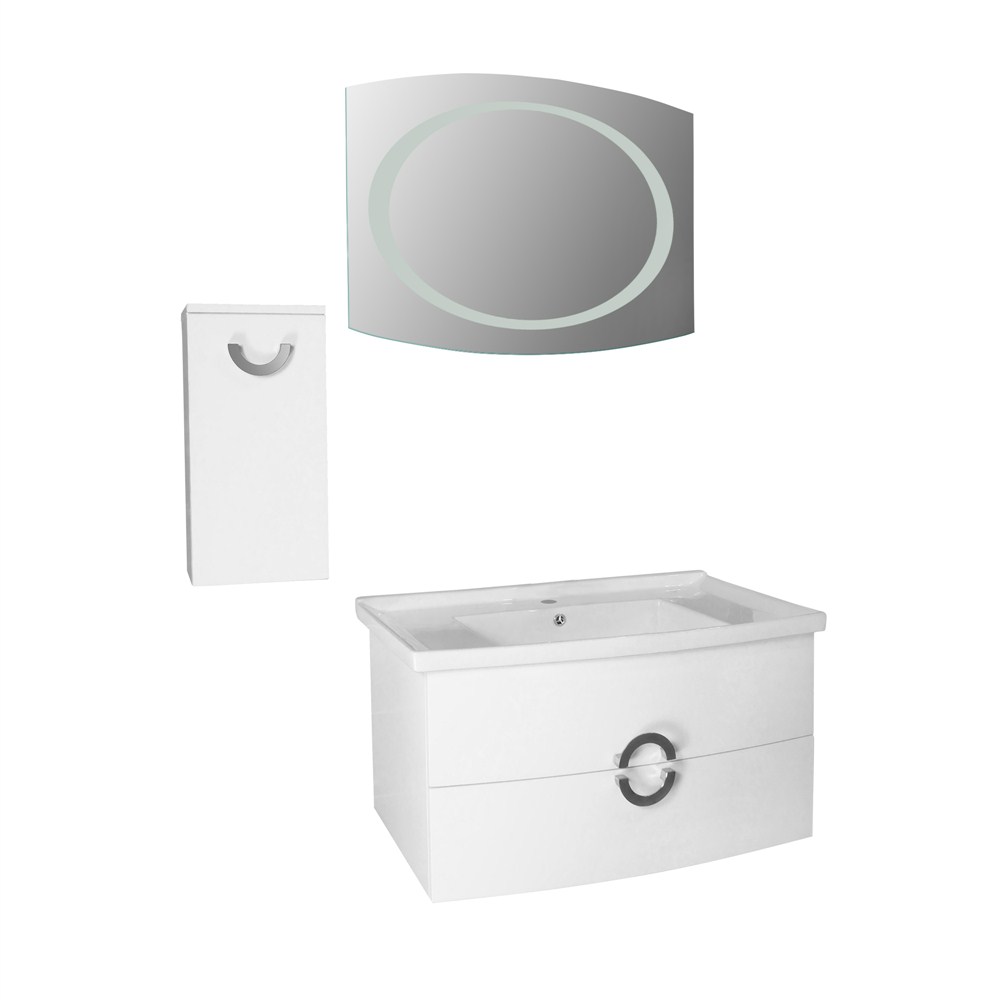 The “Artemis”- complete set of bathroom furniture presents an elegant design that will rejuvenate your bathroom. The collection’s material is PVC which offers high-humidity resistance, easy to clean and durable surfaces for long-lasting beauty. White furniture decor fit very well in environments with modern tiles in monochrome colors like red, white, green, lila ,etc..This is a collection that includes: basin, basin- cabinet, mirror & side cabinet. All of the components are pre-assembled and ready-to-install in a quick and easy way. With “Artemis” set you can remodel your bathroom anytime by removing the wall storage unit anywhere your space needs even more storage. The complete bathroom makeover with “Artemis”brings innovation and fun in your home.