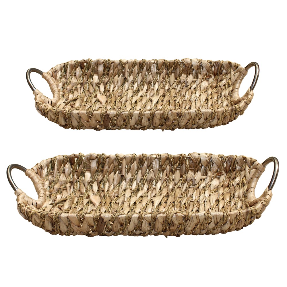 Whether as a decorative piece or as a part of your storage and organization system, this fun basket is sure to become a favorite part of your home decor. Straw hand made basket inspired finish, you will love having this piece next to your sofa or arm chair to store magazines, newspapers and more. Order yours today. Sizes: 50x29xH14 cm; 46x25xH13 cm