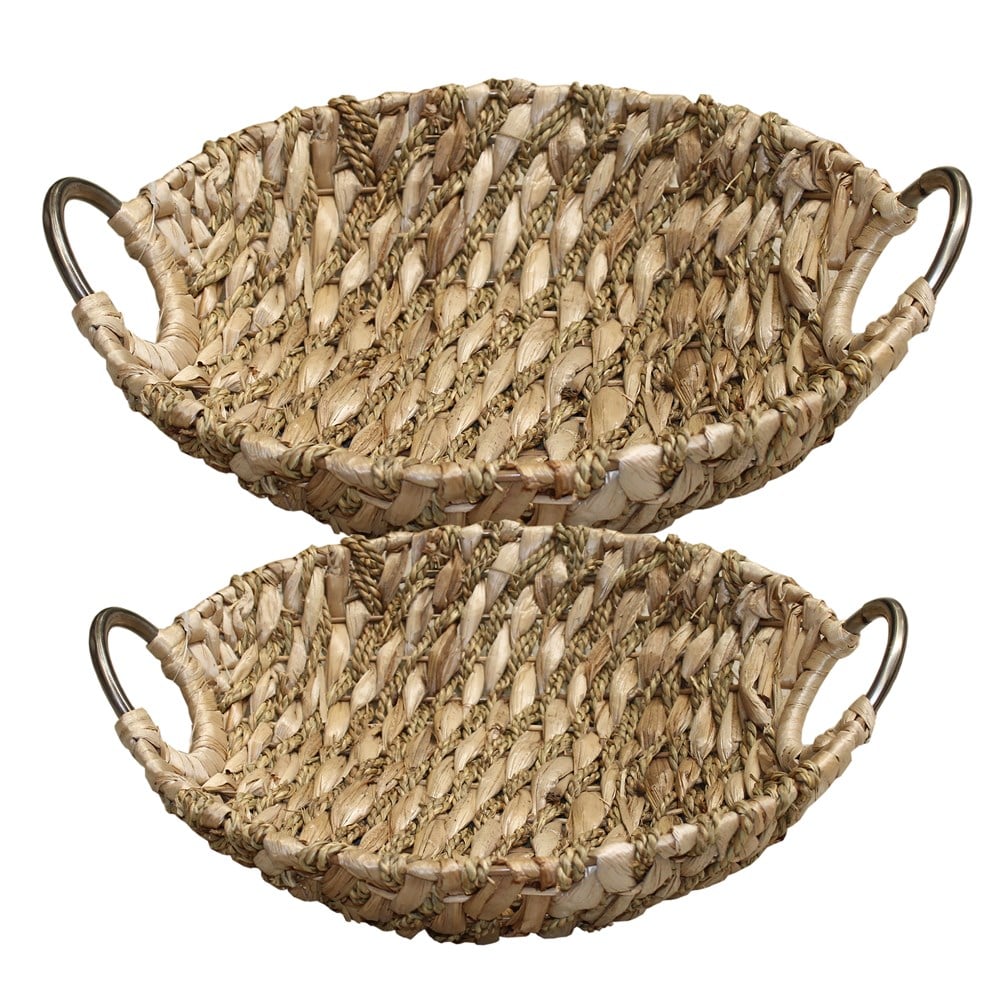 Whether as a decorative piece or as a part of your storage and organization system, this fun basket is sure to become a favorite part of your home decor. Straw hand made basket inspired finish, you will love having this piece next to your sofa or arm chair to store magazines, newspapers and more. Order yours today. Sizes: Dia.42 xH14 cm; Dia.35 xH12 cm