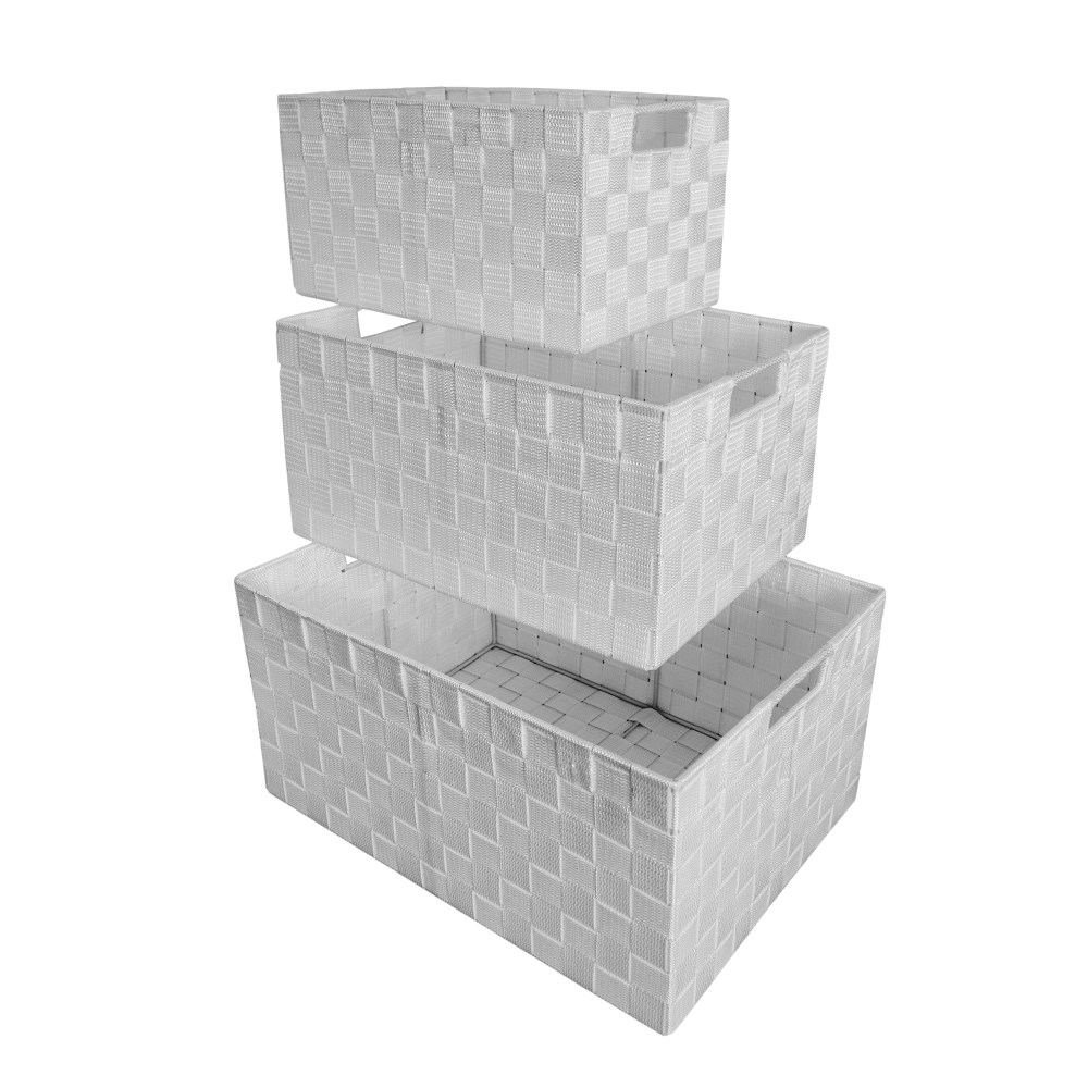Wicker box set of 3 pieces, nylon, white, 40x30xH20 cm; 35x25xH18 cm; 30x20xH16 cm