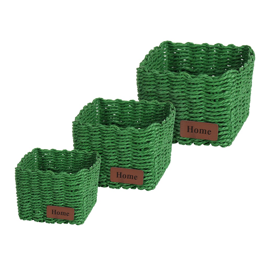 Wicker box set of 3 pieces, paper, green, 17x17xH11 cm; 14x14xH10 cm; 11x11xH9 cm