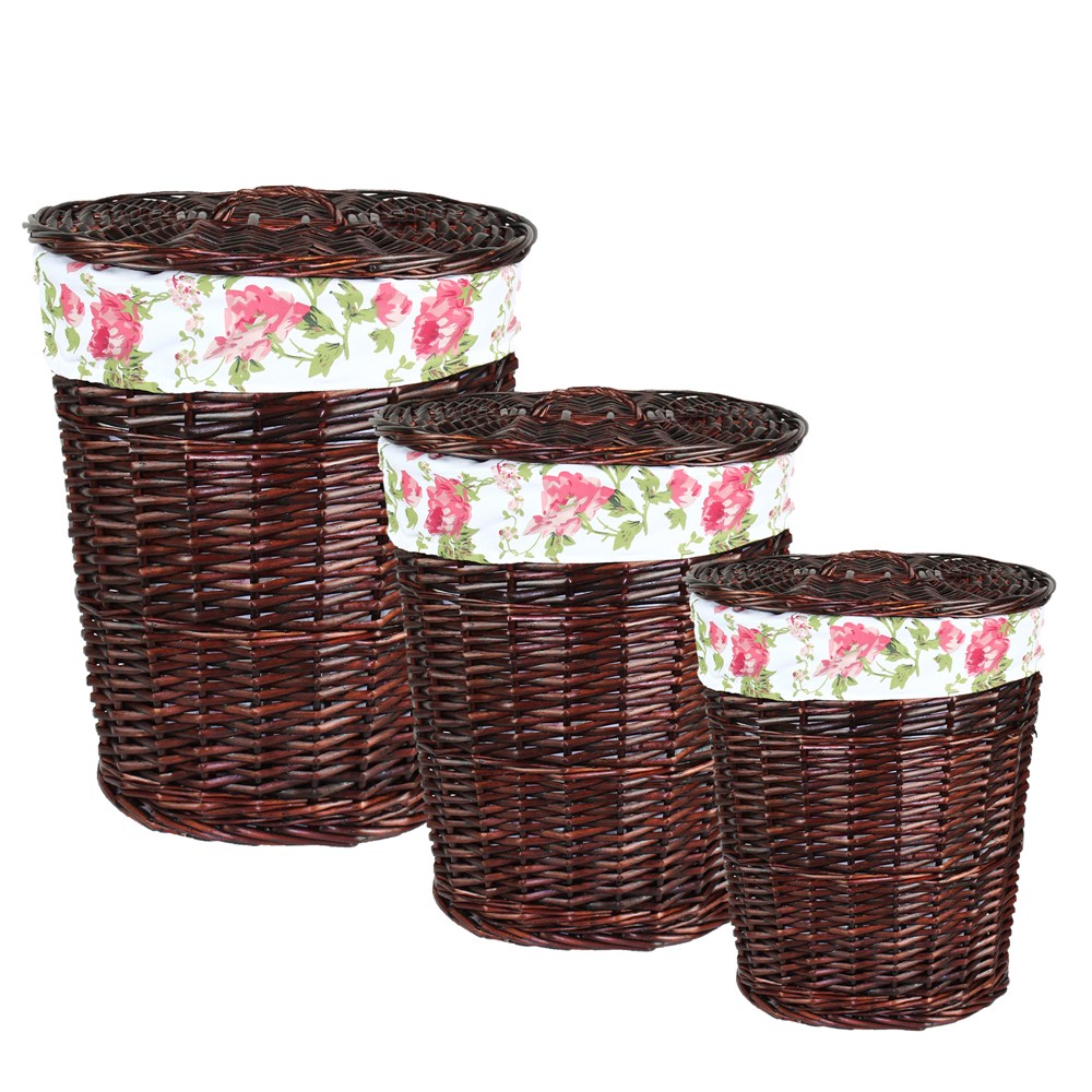 Wicker box set of 3 pieces, willow and textile, dark brown, 50x37xH57 cm; 40x31xH48 cm; 33x24xH38 cm