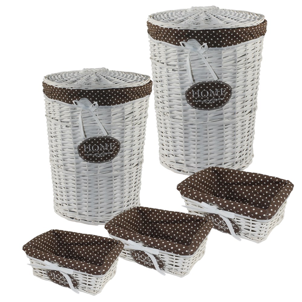 You're reviewing:Wicker box set of 5 pieces, willow and textile, brown/white, Ø42 xH54 cm; Ø36 xH46 cm; 37x27 xH14 cm; 32x22 xH11 cm; 26.5x17 xH10 cm