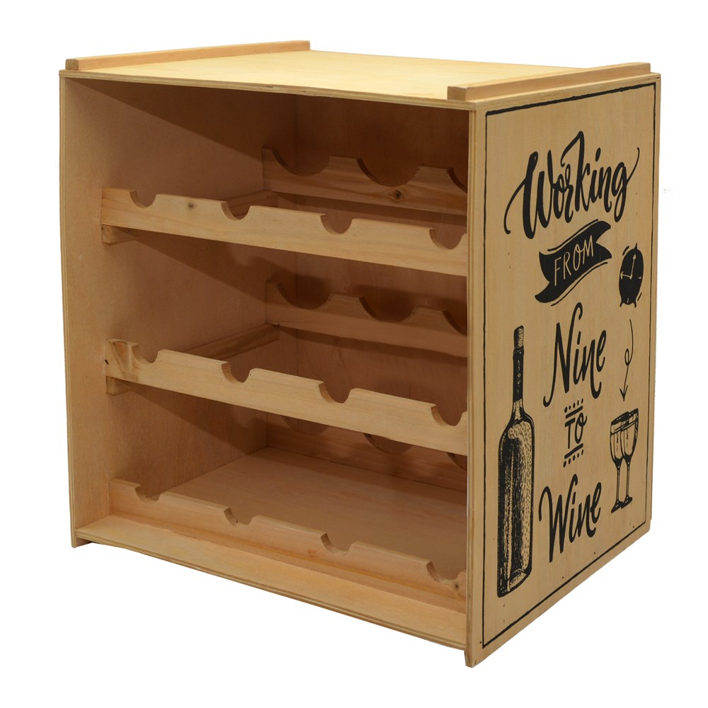Wine rack, 12 bottles, wooden, natural, 38.5x29.5xH41 cm