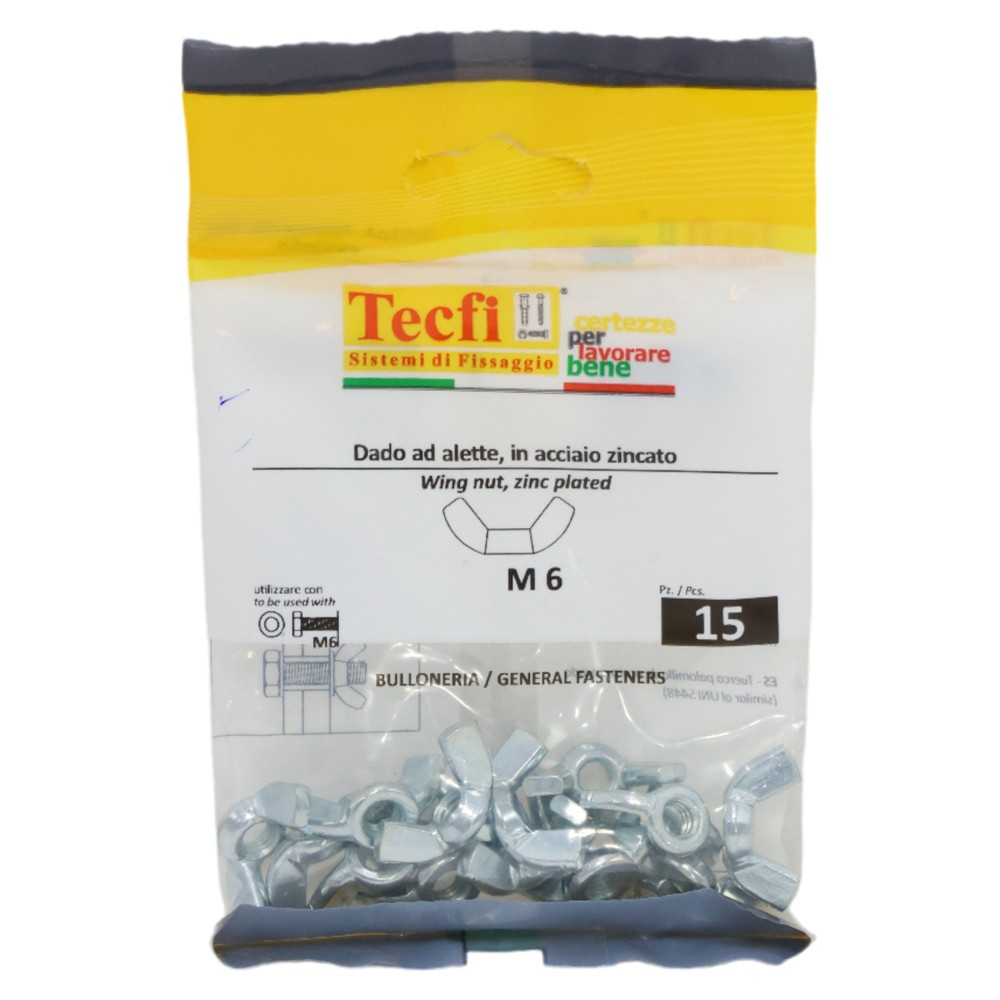 Wing nut, in galvanized steel, M6mm , Bag 15