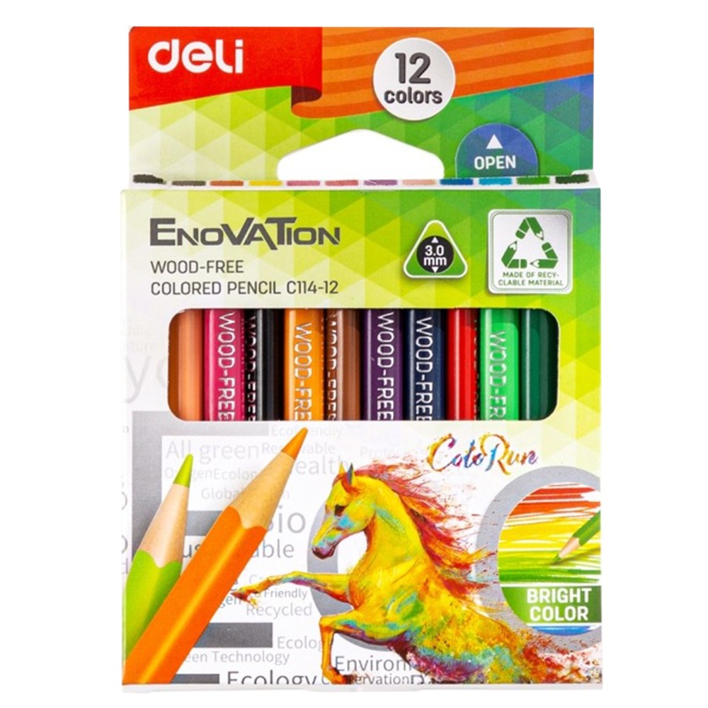 This set of 12 wooden paints from Deli Enovation offers vibrant and long-lasting colors, ideal for drawing, coloring and creative projects. The paints are easy to use, providing good control and enjoyable results for children and students. Safe and durable materials guarantee long-term use.