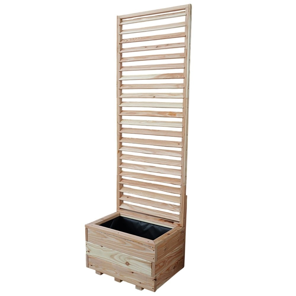 A modern planter with integrated trellis, designed to bring greenery and style to gardens, patios, and balconies. Made of 100 % larch wood, this elegant yet durable piece is perfect for growing climbing plants, flowers, or herbs while providing natural privacy and decorative appeal. Its modular design allows you to combine it seamlessly with other Venetian or Larix planters to create a continuous green wall, versatile layout, or tailored garden arrangement - ideal for both compact spaces and larger outdoor areas
