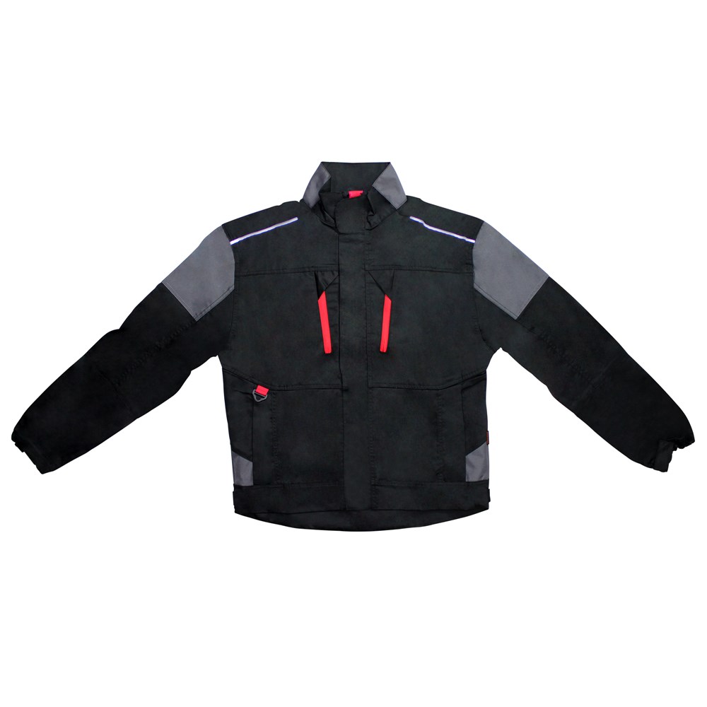 This contrast jacket is practical and strong. Multiple pockets including a back hat pocket, arm, side, chest pockets, personalization pocket, and adjustable velcro key handles. Combines with trousers TX11 and Overalls with Ties TX12.