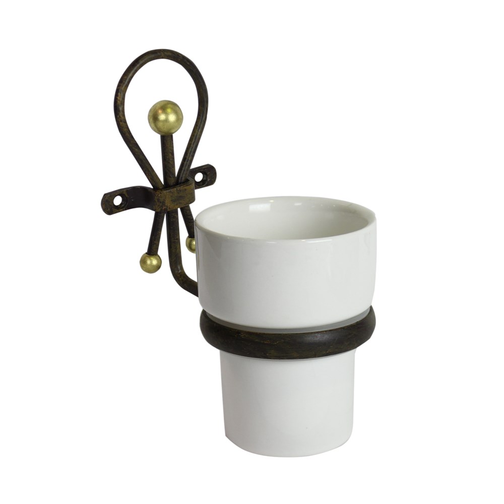 'Feridras''tooth brush holder will add a graceful look to your bath décor. Its clean, geometric lines make it the smart choice for any bath.The wall-mounted design saves space on your countertop. The tumbler's opulent design with contemporary ceramic and iron ring complements a variety of interior styles.