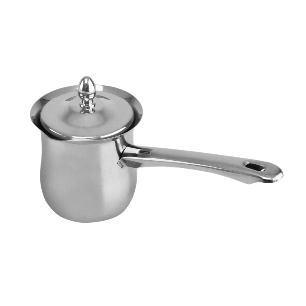 Coffeepot with handle of full stainless steel material, very clean and hygienic with characteristic form, retains the odor of coffee and gives a very pleasant taste. It is very practical in use, per four persons (quadruples). The quality and the smoothness of its surface helps that after heating or cooking process this coffepot to be easily clean. It is quite economical and very functional.