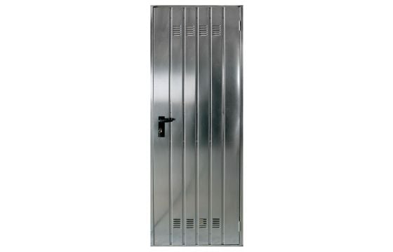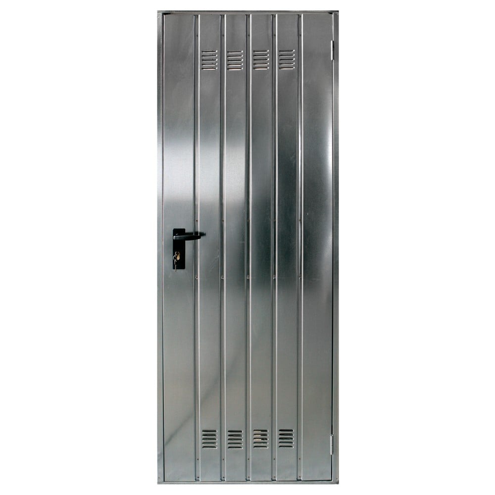 The galvanized metal door has a height of 200 cm and a width of 90 cm. The required light dimensions are 200 cm in height and 90 cm in width. It is made of galvanized steel sheet with a thickness of 0.6 mm, characterized by a corrugated and galvanized finish. The frame is made of galvanized steel with thickness of 1 mm lock cylinder is included in the package and the Italian production.