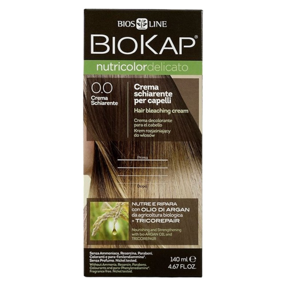 Kremi zbardhues BioKap Nutricolor Delicato, i bërë nga proteina e grurit dhe vaji i arganit, krijon thekse natyrale ose thjesht zbardh flokët tuaj.