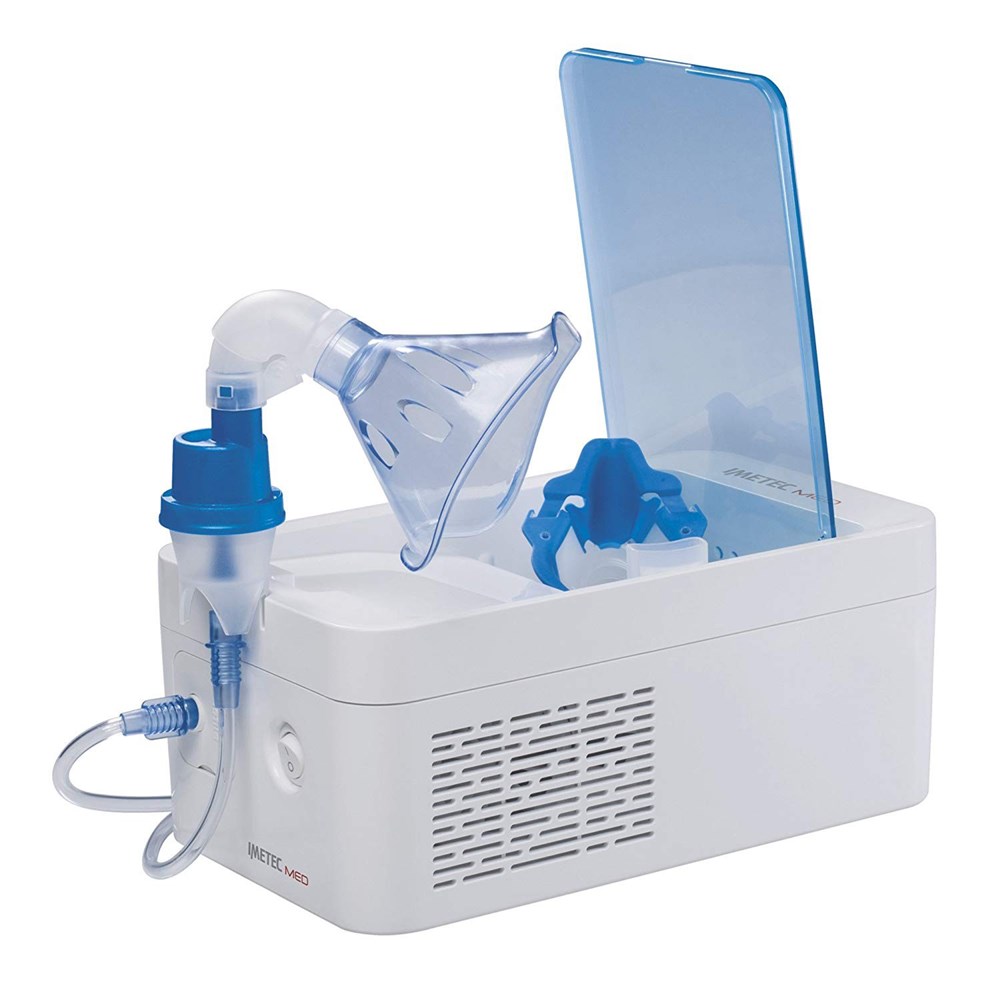Aerosol Imetec me maskën pediatrike që përshtatet me rritjen e fëmijës tuaj. Lidhja e artikuluar e patentuar për administrimin e ilaçeve në një pozicion të shtrirë. Spërkatje e shpejtë dhe e heshtur. Prodhim Italian i pajisur me aksesoret si: maskë pediatrike, maskë për të rritur, gojëdhënëse dhe pirun e hundës në një pajisje shtesë. Eshtë një pajisje mjekësore e certifikuar CE. Lexoni me kujdes paralajmërimet dhe udhëzimet për përdorim. Konsumi: 150 W, voltazhi i hyrjes në AC: 230 V. Gjerësia: 26.9 cm, Thellësia: 15.5 cm, Lartësia: 11.6 cm