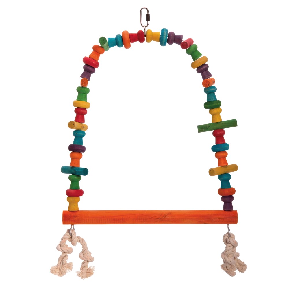 IMAC Lëvizje prej druri me blloqe shumëngjyrësh të pajisura me një goditje për ta varur atë nga kafazi.