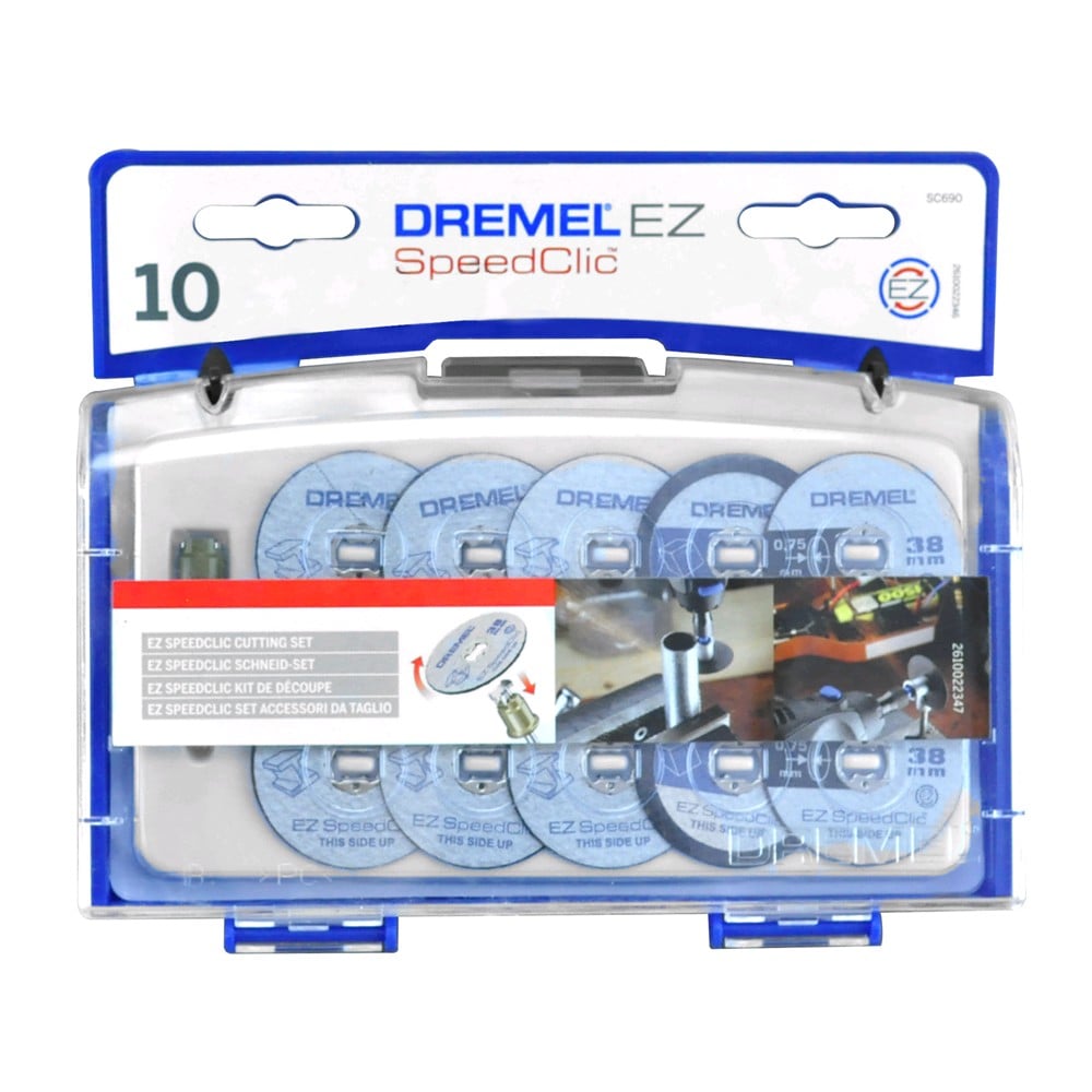 Set aksesore per minizmerilues 10 disje preres dhe nje mandrine. Seti perfshin 6 disje preres per metal 38mm, 2 disje special per prerje universale dhe 2 disje preres per plastike.
