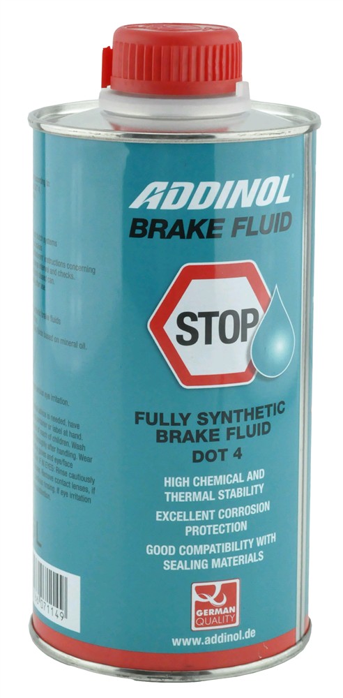 ADDINOL Brake është një fluid plotësisht-sintetik i tipit DOT 4. Produkti është bazuar në eter glikol dhe përmban frenues ndaj korrozionit si dhe aditivët anti-oksidimi. Përshtatshmërinë e shkëlqyer për frena hidraulike dhe frenat disk. I përdorshëm në të gjitha automjetet të cilat kërkojnë një lëng të plotë-sintetik të frenave sipas DOT 4.