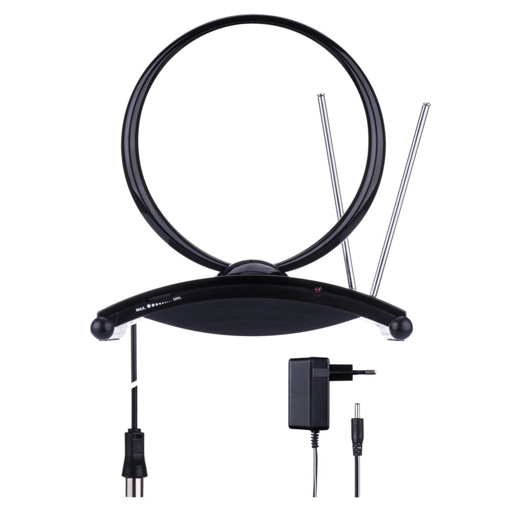 Antene TV UVR-AV209 ,Lte DAB/DVB-T/T2, 47 dBi, 160–230 MHz, 470–790 MHz, DC 6 V/50 mA, 1.5 m kabell, 230 × 240 × 128 mm, ngjyre te zeze, IP20