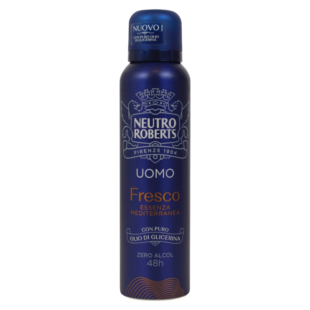 Freskia e bergamotit dhe kokrrave të dëllinjës takohet me delikatesën e shkumës, qelibarit dhe myshkut, duke i dhënë jetë deodorantit spray Asciutto nga NEUTRO ROBERTS. Formula pa alkool me antibakterial natyral është e shkëlqyer për lëkurën e meshkujve. Në fakt ka një veprim kundër djersës, nuk lë njolla dhe aureolë në rroba dhe garanton mbrojtje dhe efektivitet deri në 48 orë.