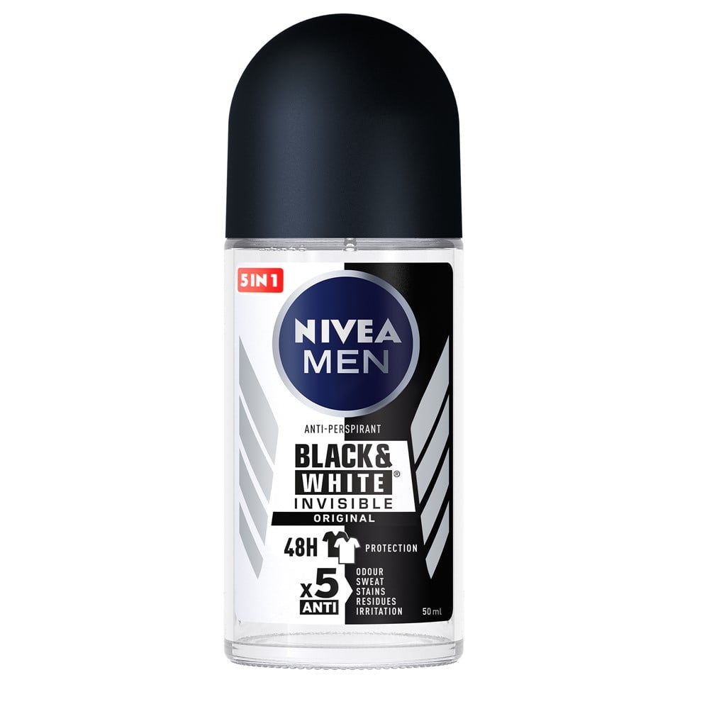 Roll-on deodorant for men Black&White, Nivea, plastic and glass, 50 ml, white and black, 1 piece
