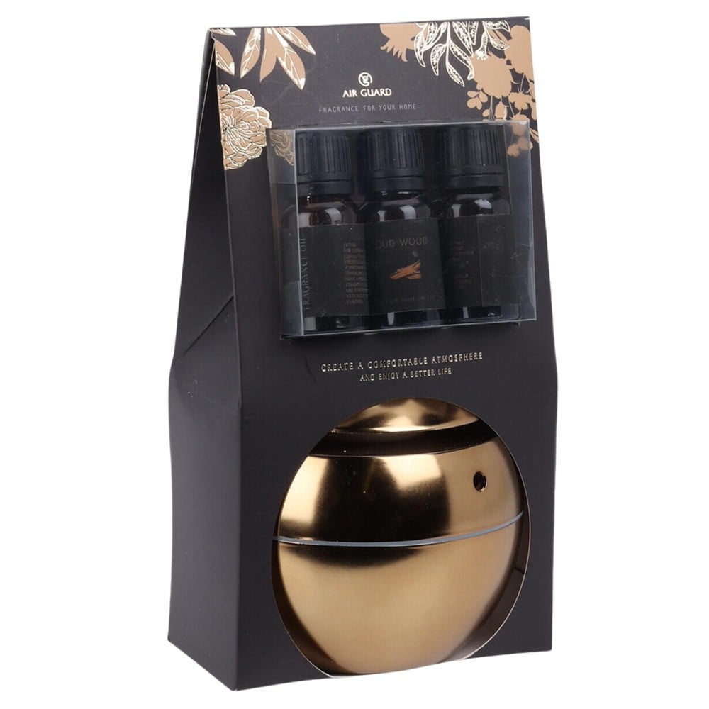 Aromatizuesi i ambientit me 3 aroma të ndryshme do i mbajë ambjentet e shtëpisë tuaj gjithnjë të freskëta. Ideuar në qelq ngjyrë floriri dhe finiturë me efekt pasqyrë ky aromatizues jo vetëm është praktik por edhe modern. Seti përbëhet nga një difuzor dhe 3 rimbushje nga 10 ml secili me 3 aroma të ndrryshme.