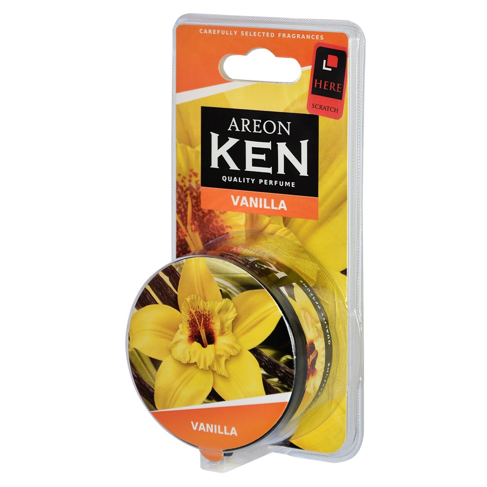 AREON Ken është një aromatik makine i konservuar që ofron freski të qëndrueshme në makinë, zyrë apo në shtëpi. Hapni atë dhe vetëm shijojeni. Ju mund ta vendosni atë në mbajtësen e pijeve të mjetit ose në një hapësirë të vogël ku ajo ju përshtatet. Ajo është e vogël dhe nuk zë shumë hapësirë, por AREON Ken siguron një mjedis të këndshëm në makinën tuaj. Shijoni udhëtimin tuaj me AREON Ken!