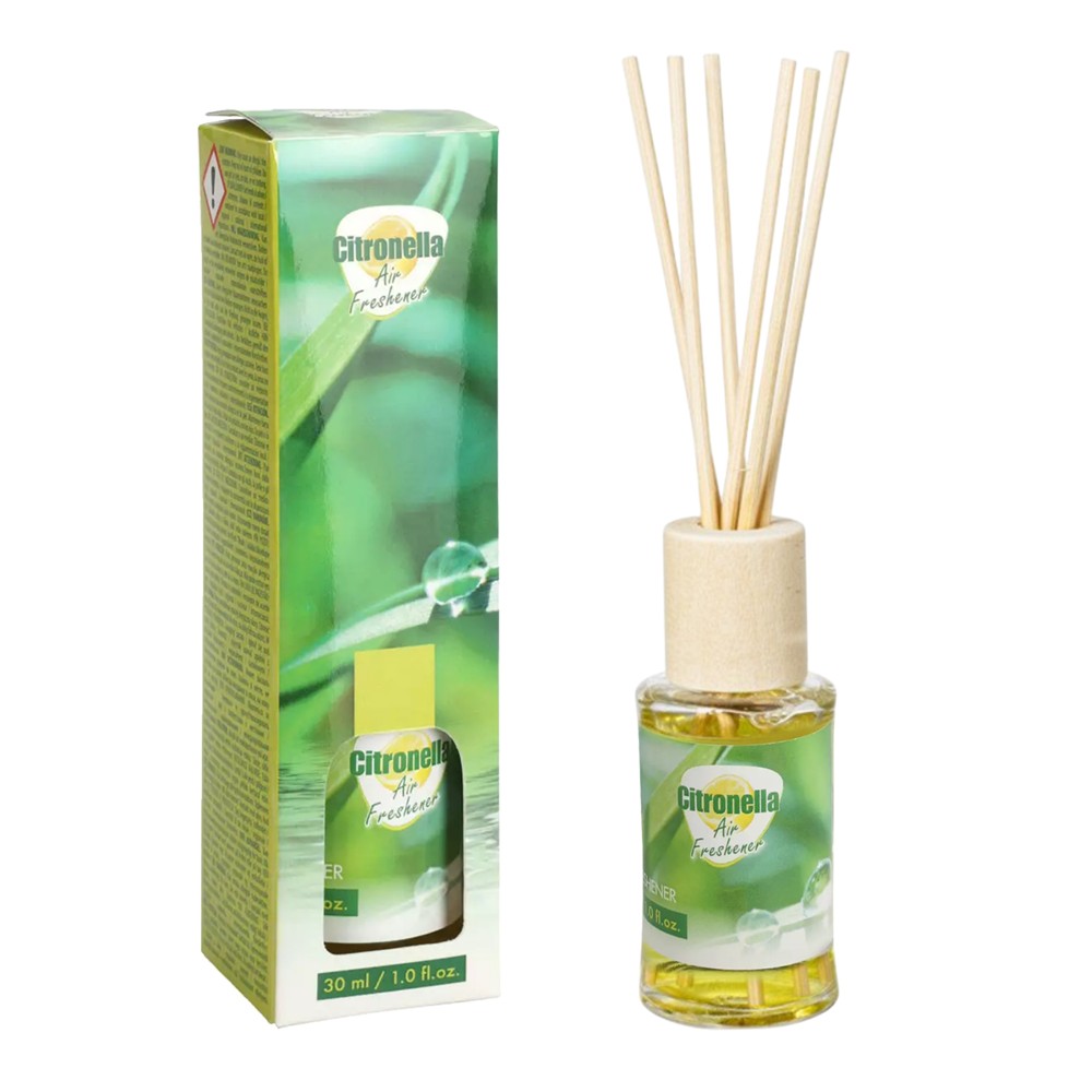 Difuzori prej 30 ml prej qelqi me aromë citronele është një freskues ajri elegant dhe i sofistikuar që do ta mbushë shtëpinë tuaj me një aromë të këndshme citronele. Me një dizajn modern dhe një përmbajtje prej 30 ml, ky produkt është perfekt për të krijuar një atmosferë komode dhe të freskët në çdo hapësirë. Madhësia e tij kompakte e bën ideal për t'u vendosur në çdo cep të shtëpisë, duke siguruar një shpërndarje të vazhdueshme dhe afatgjatë të aromës. Përveç kësaj, prezantimi i tij në një shishe qelqi i jep një prekje elegance dhe sofistikimi, duke e shndërruar atë në një element shtesë dekorativ. Shijoni një atmosferë të këndshme dhe relaksuese me difuzorin prej 30 ml prej qelqi me mikado citronelë, i cili kombinon efektivitetin dhe stilin në një produkt të vetëm.