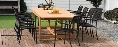 Tavolinat prej druri janë një zgjedhje e mirë për të mobiluar ambientet e hapura të bareve, verandave, tarrace apo ballkoneve. Nuancat e ngrohta të drurit përshtaten mjaft mirë me ambientet e gjelbëruara si dhe materiali i tyre cilësore bën që të jenë rezistente ndaj lagështisë dhe agjentëve atmosferikë. Rrethore apo katrore, në Megatek do ti gjeni të gjitha variantet!