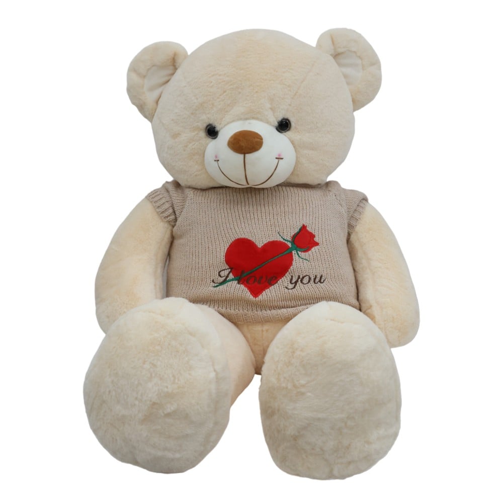 Teddy bear, polyester, beige, with heart, 95 cm, 1 piece