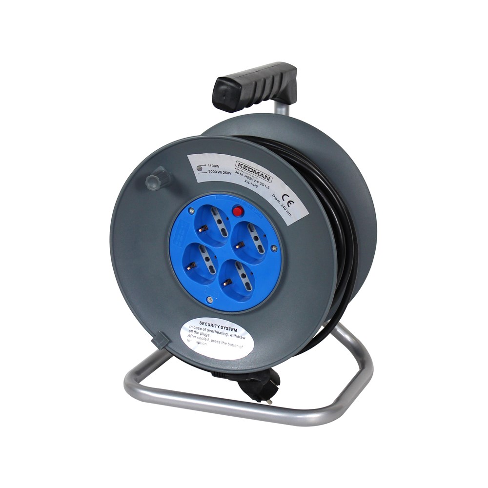 Zgjatues me baraban 30m,3x1.5mm eshte nje zgjidhje efikase per proceset e punes qe kryen larg burimeve me energji,eshte praktike dhe e paisur me doreze per transportim.