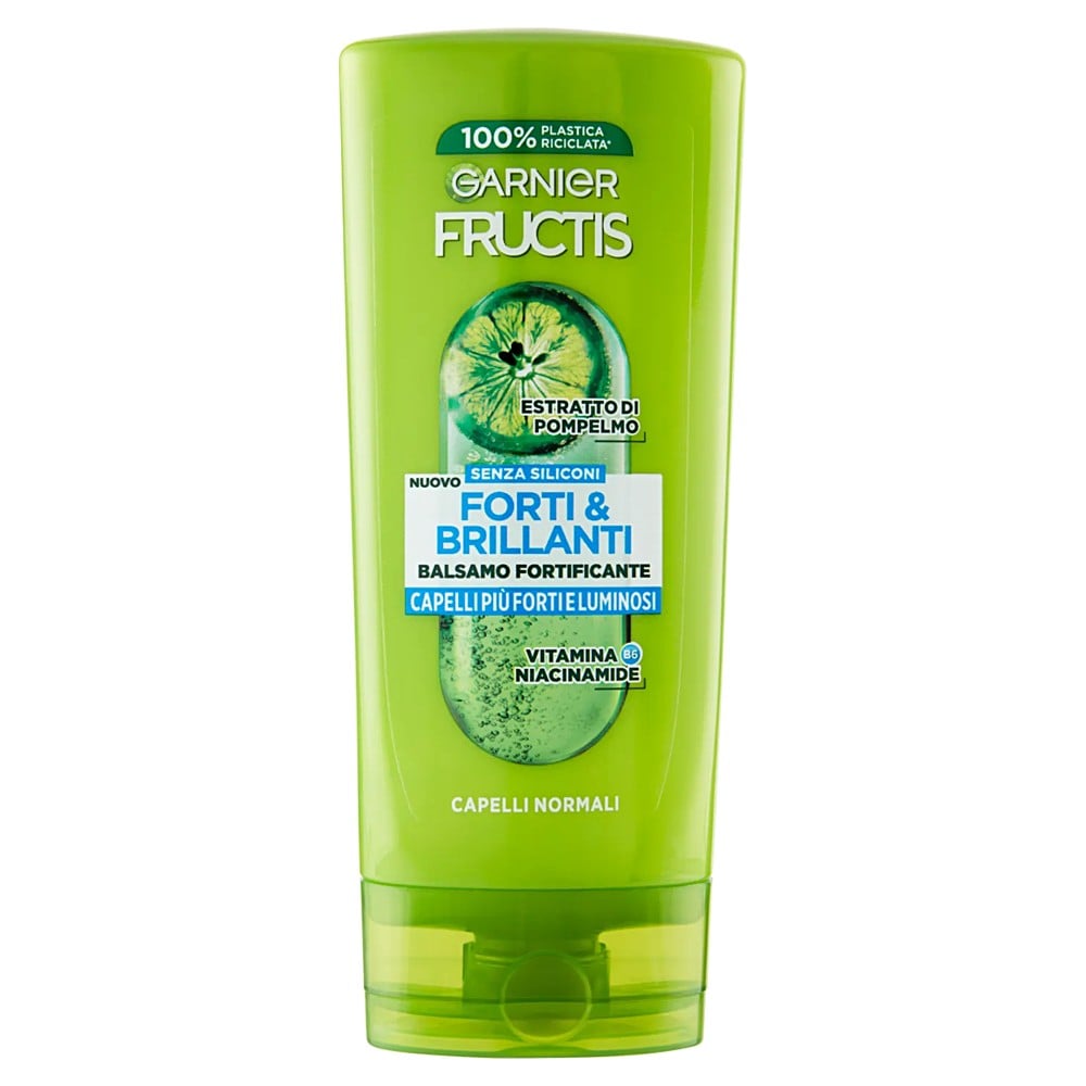 Garnier Fructis balsam Strong & Shiny për flokë normalë, i bën flokët më të fortë dhe më të shndritshëm. Formula me ekstrakt grejpfrut rrit shkëlqimin dhe ndihmon flokët të duken më të fortë. Teknologjia e pasuruar me vitaminë B6 forcon flokët për një pamje më të shëndetshme, e kombinuar me Niacinamide për të eliminuar sebumin e tepërt.