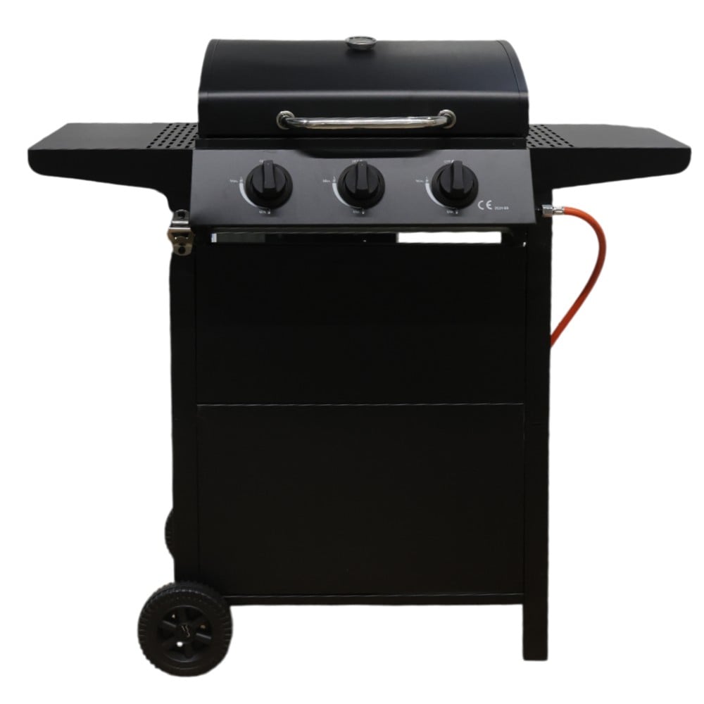 Barbekju me gaz, 3 burner, celik, 106x50x100 cm, e zezë, 1 copë