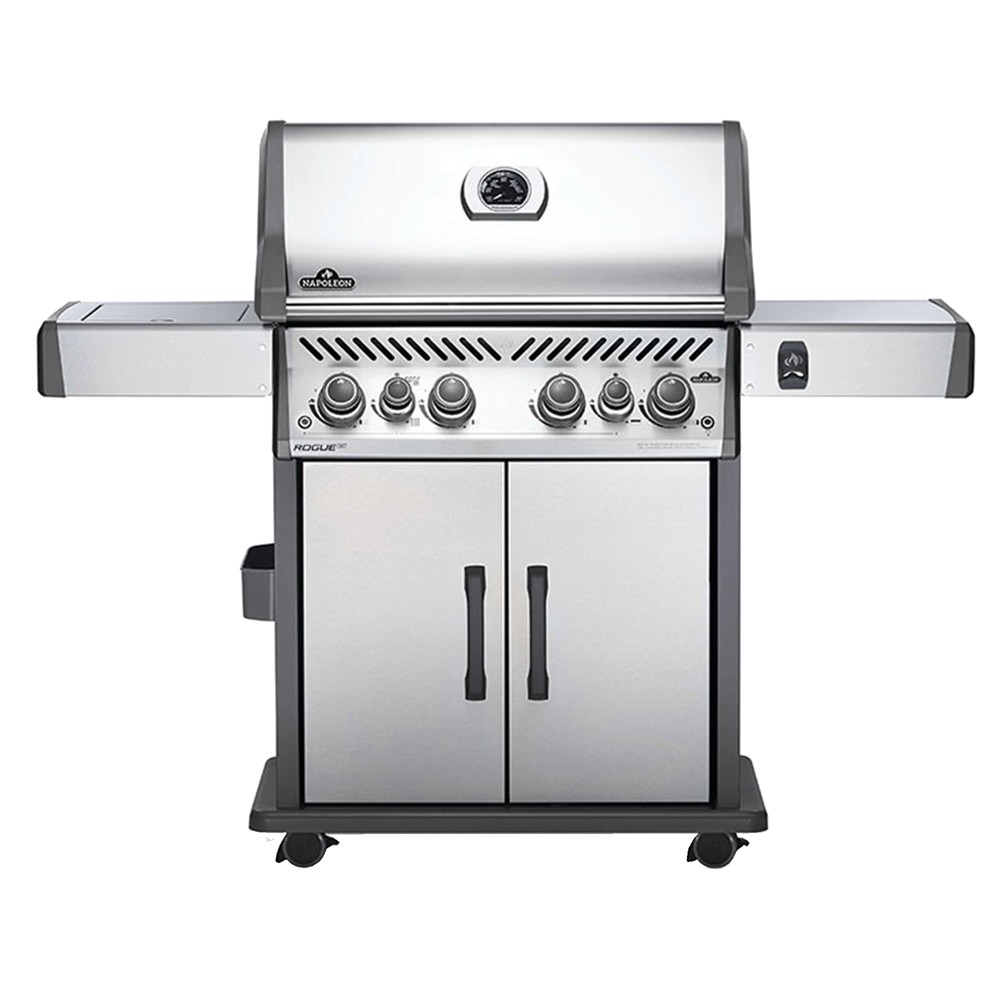 Barbekju me gaz prej çeliku inox Napoleon Rogue SE 525 SIBme ndezës anësor infra të kuqe dhe ndezës të pasëm është një grilë e qëndrueshme. Me katër ndezës kryesorë, një djegës të pasme rotiserie dhe një kapak të lartë të sipërm, kjo zgarë ka gjithçka që ju nevojitet për të krijuar ushqime perfekte. Raftet anësore ofrojnë shumë hapësirë përgatitore, përfshirë një hapës të integruar të shisheve, një kapak dhe një panel kontrolli të ri elegant.