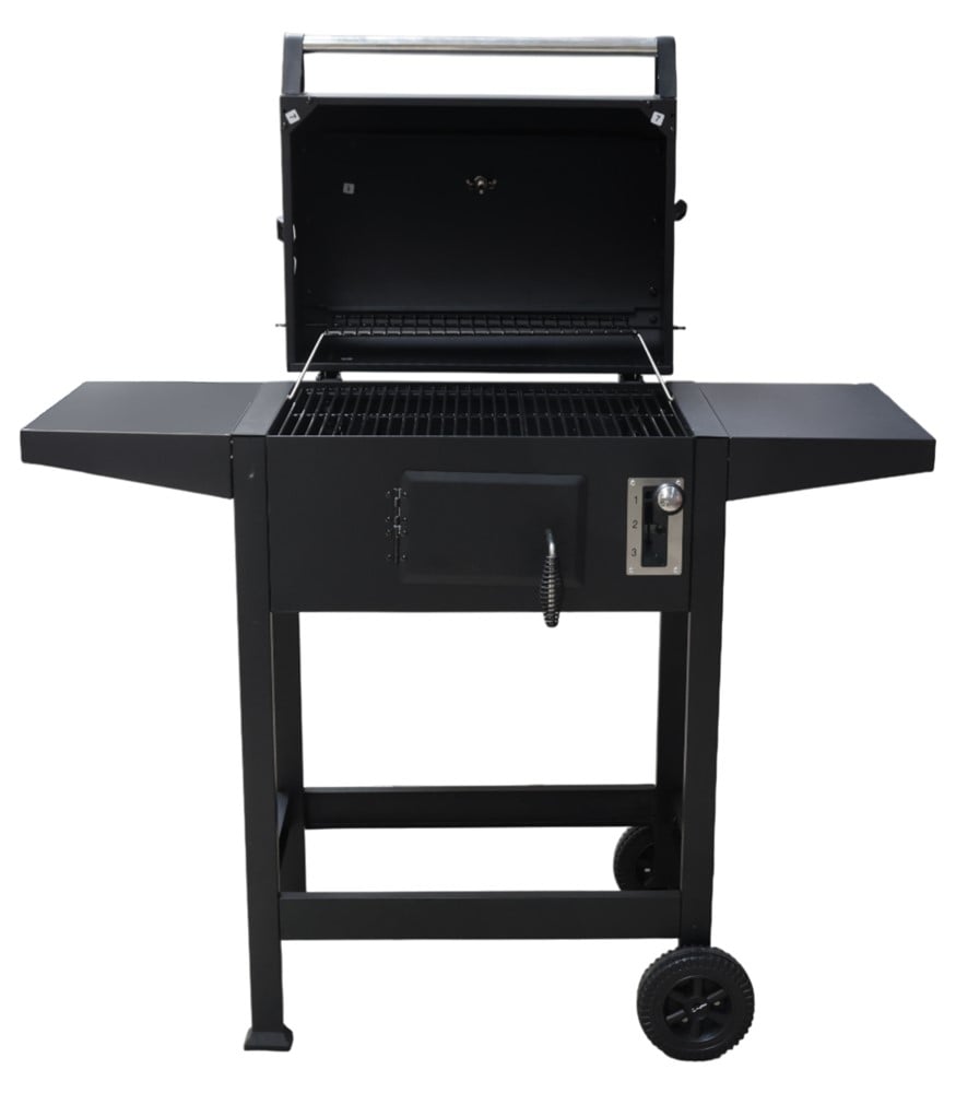 Kjo barbekju me qymyr është zgjidhja ideale për ata që duan të shijojnë gatimin tradicional. Me dy grilla të kromuara me përmasa 35.6x36 cm secila, kjo barbekju ju lejon të gatuani sasi të mëdha mishi, perimesh dhe peshku njëkohësisht, duke kursyer kohë gjatë eventeve dhe darkave në oborr. E krijuar prej material çelik i lyer me bojë rezistente ndaj nxehtësisë, me trashësi 0.7 mm, duke e bërë të fortë dhe jetëgjatë edhe në përdorime intensive. Falë dizajnit të saj të thjeshtë dhe të qëndrueshëm, kjo barbekju është perfekte për përdorim në kopësht, verandë, oborr apo gjatë udhëtimeve të shkurtra për kamping.