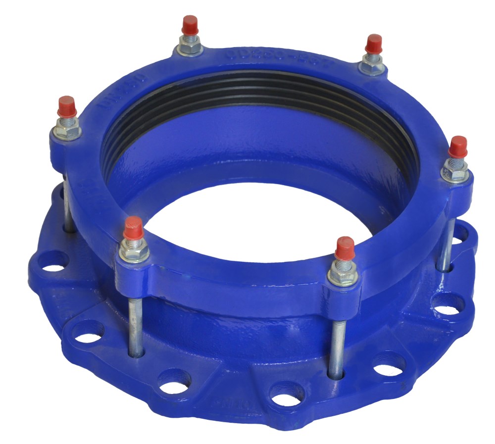 Bashkues shumefunksional DN 250 mm. Ky bashkues është rakordi më i përdorshem në linjat e ujësjellësave, linjat e ujërave industriale etj,. Bashkuesi shërben për të lidhur tubin e polietilenit me rakorderi të tjera të sistemit si: saracineske, kundra valvul, filtër etj. Gjithashtu ky rakord mund të përdoret dhe si pjesë çmontuese në pjesët lidhëse të sistemit, për të bërë më të lehtë ndërhyrjen në raste riparimesh. Në pjesën e bashkimit me tubin ndodhet një gominë e cila parandalon rrjedhjen e ujit duke shtrënguar tubin e polietilenit, ndërsa në anën tjetër bashkimi me rakorderite e sistemit bëhet me anë të kapjes me fllanxhe. I ndërtuar me trup gize dhe lyerje me pjekje për më shumë qëndrueshmeri ndaj kushteve atmosferike. Rezistent në presion të larte deri në 16 Bar