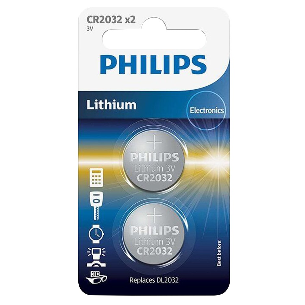 Bateri, Philips, CR2032, Lithium, 3 V, 2 cop/pako