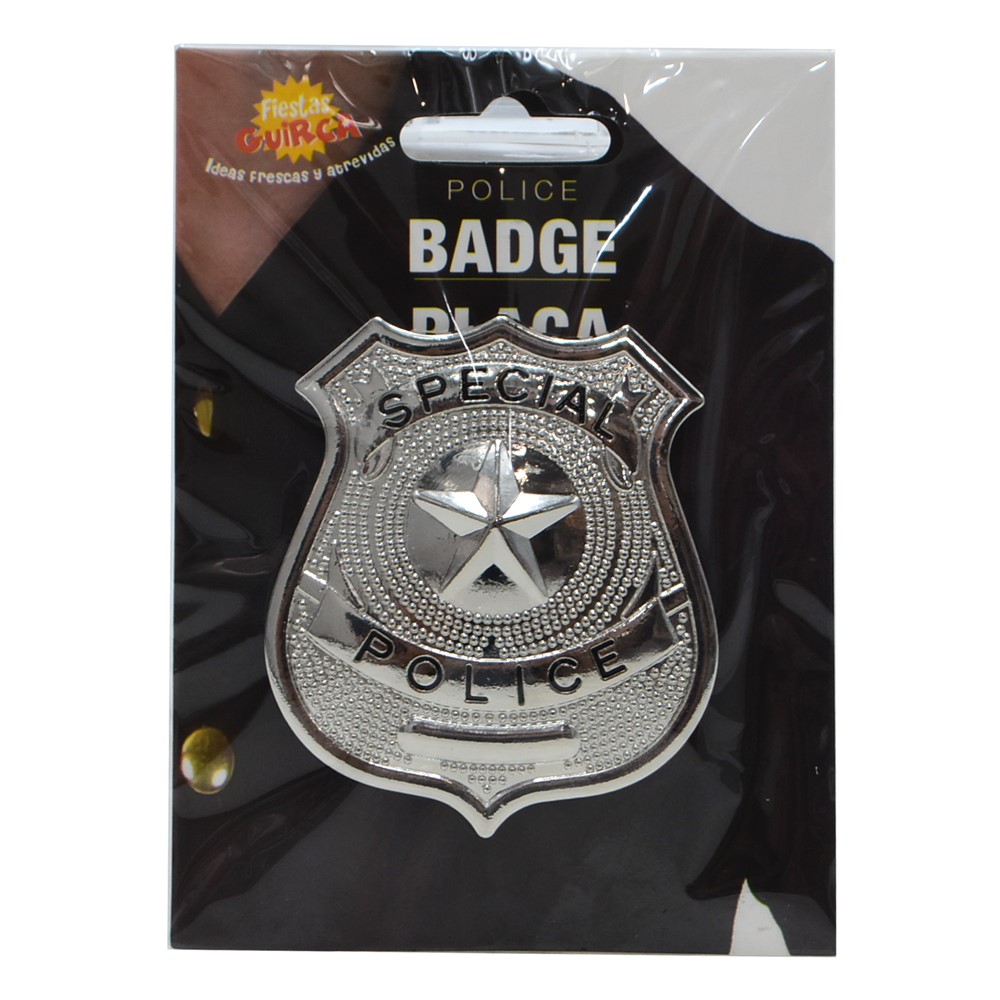 Baxho polici, 6 cm, prej materiali plastik në ngjyrë argjendi. Aksesor I rëndësishëm për policët e cila e identifikon atë.