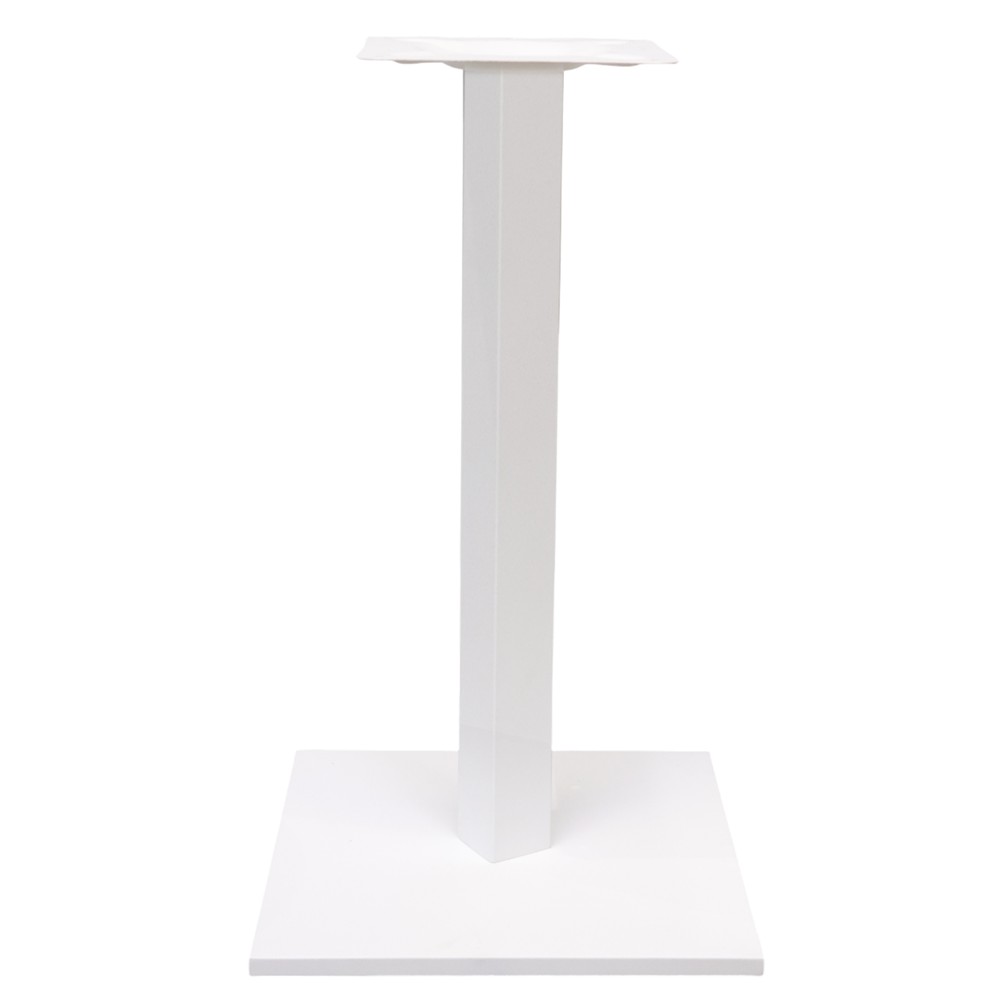 Bazamenti i tavolinës me bazë katrore është i punuar nga metal cilësor në ngjyrë të bardhë, me përmasa 40x40 cm, tub 6x6 cm dhe suprinë 25x25 cm, ndërsa lartësia e tij është 72 cm. Ky dizajn modern dhe minimalist ofron qëndrueshmëri dhe stabilitet maksimal, duke e bërë të përshtatshëm për tavolina të ndryshme dhe për çdo ambient shtëpie ose zyre.