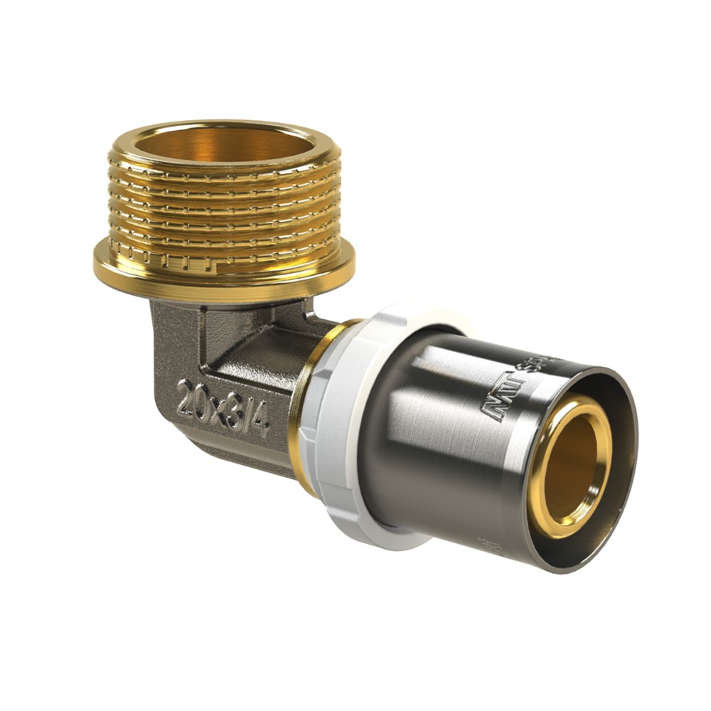 Bërryl 90 ° për multistrat, me presim, DN 20x3/4", M, bronz perdoret gjeresisht per instalimet me tub multistrat,perdoret kryesisht ne sistemet per uje te pijshem por dhe per sistemet e kaldajave dhe ujerave sanitare.