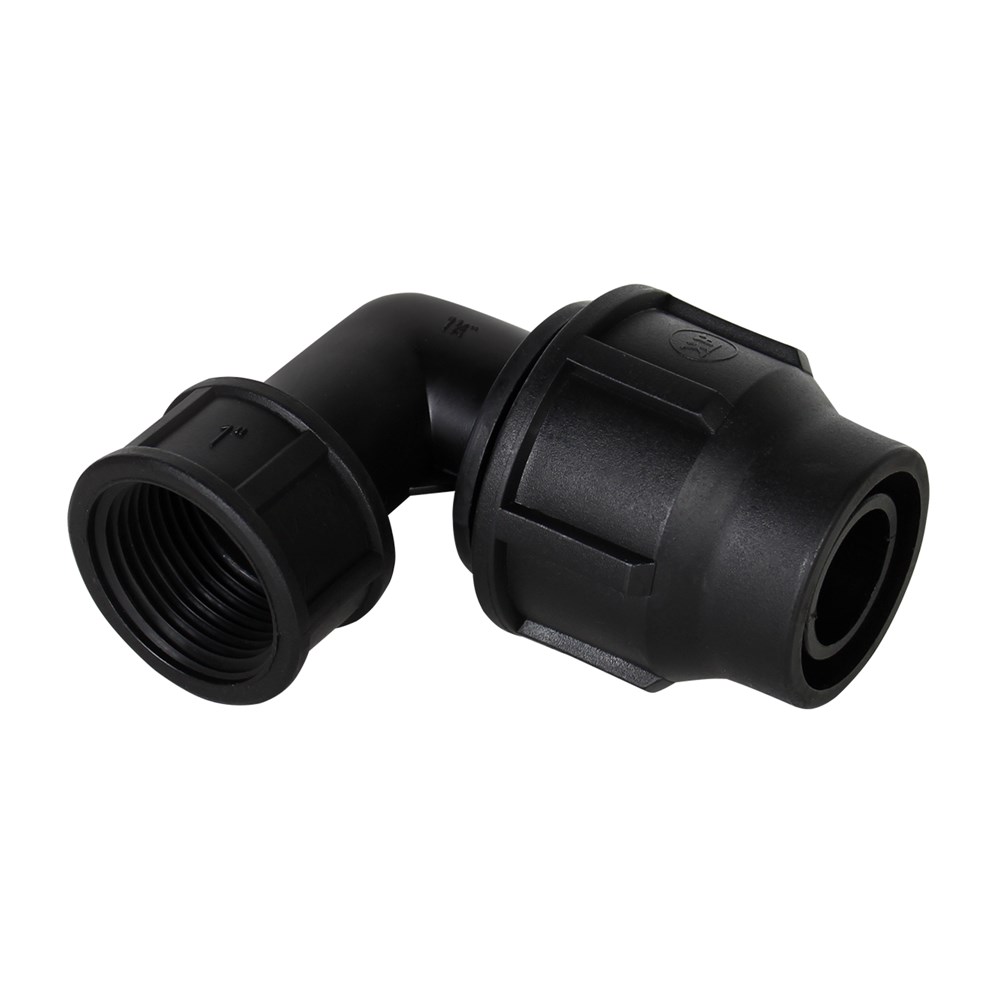 Bërryl me rakord 32x1" femër prej PE me kënd 90°. Përdoret gjërësisht sot në Europe për instalimet këndore të linjave ujësjellëse, vaditjet në bujqësi etj. Ky bërryl bën te mundur degezimin e rrjetit në kënd 90°. Ky bërryl bashkon tubin LDPE Ø 32 me rakorderi te tjera me anë të filetove, për bashkimin me fileto rekomandojmë të përdoret teflon ndërsa tubi bashkohet me bërrylin në mënyrë mekanike me rakord. E prodhuar me standarte Europiane, rezistent ndaj lëndëve gërryese dhe projektuar për t'i bërë ballë presionit deri në 6 Bar.