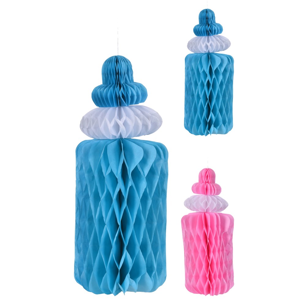 Tollumbaca dekorimi për baby shower në formë biberoni. Të vecanta për dekorimin e festës suaj. Vjen ne ngjyre blu ose roze.