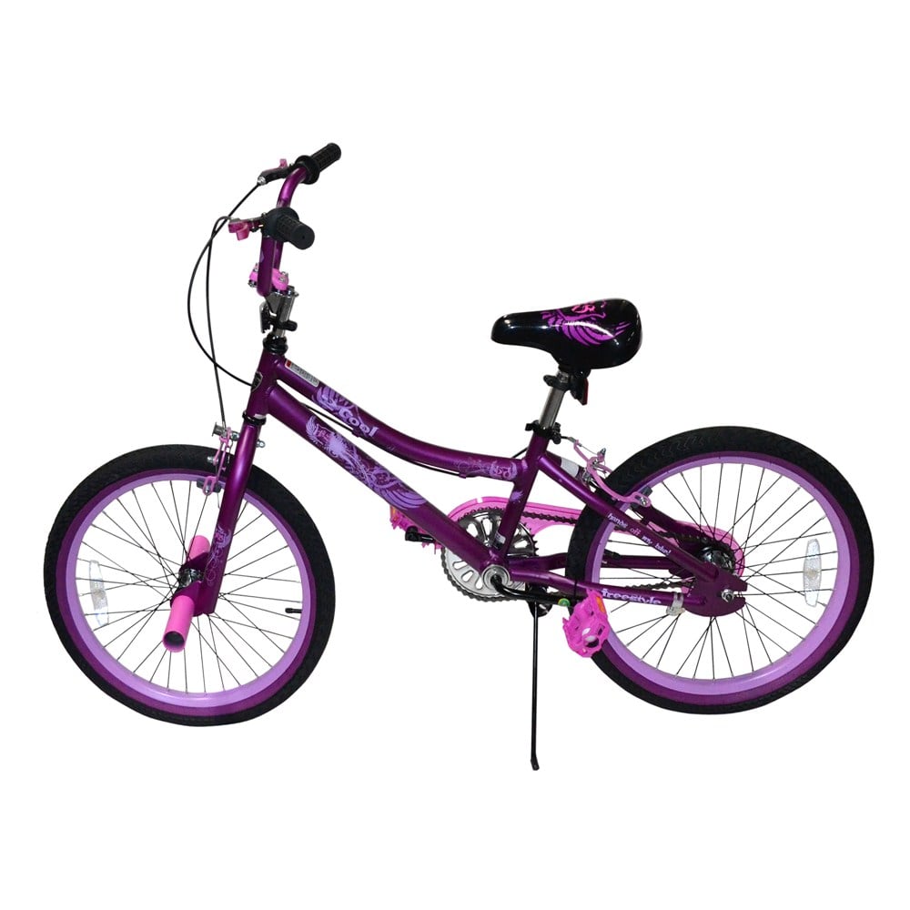 Biçikletë për vajza, 20 inç, BMX, ngjyrë vjollcë me gjysëm shkëlqim. Strukturë të qëndrueshme çeliku, trasmision me një shpejtësi. E pajisur me dy frena për gomën para dhe mbarapa. Goma 20", ndenjëse për rehati optimale, madje edhe gjatë rrugeve të gjata.