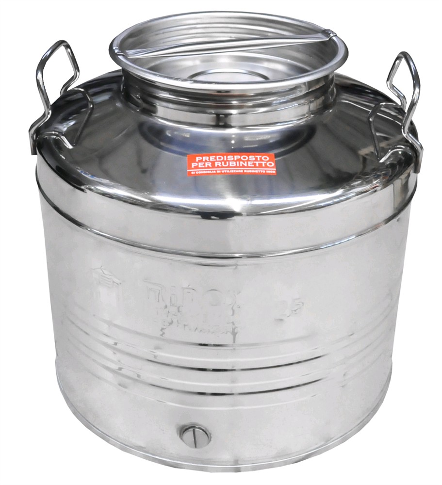 Bidon inoksi me përforcim, i cili është shumë herë më rezistent ndaj goditjeve. Përdoret për ruajtjen e lëngjeve ushqimore, si vaji, vera, rakia etj. Ruan vlerat ushqimore dhe është higjenikisht i pastër.
